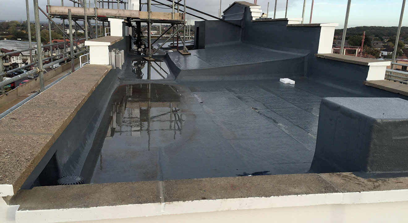 This image shows how TuffStuff® GRP can be used to fully waterproof unusual flat roof areas.