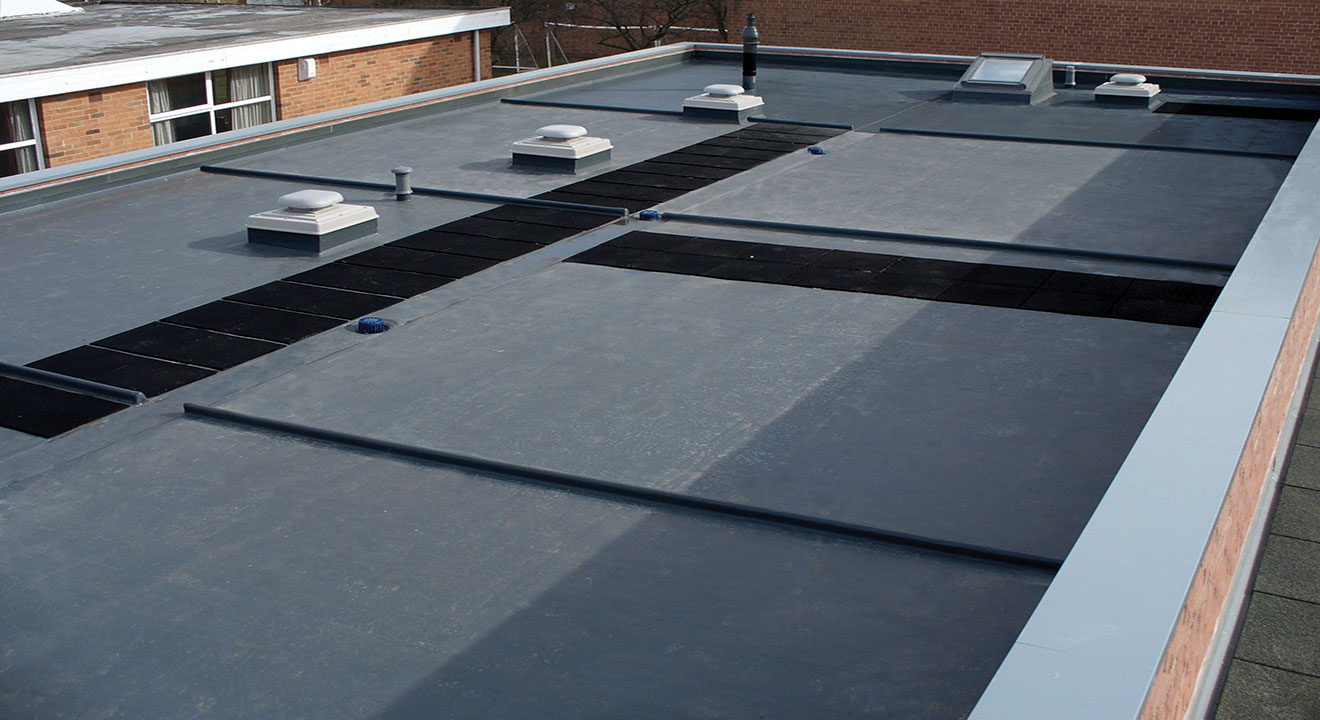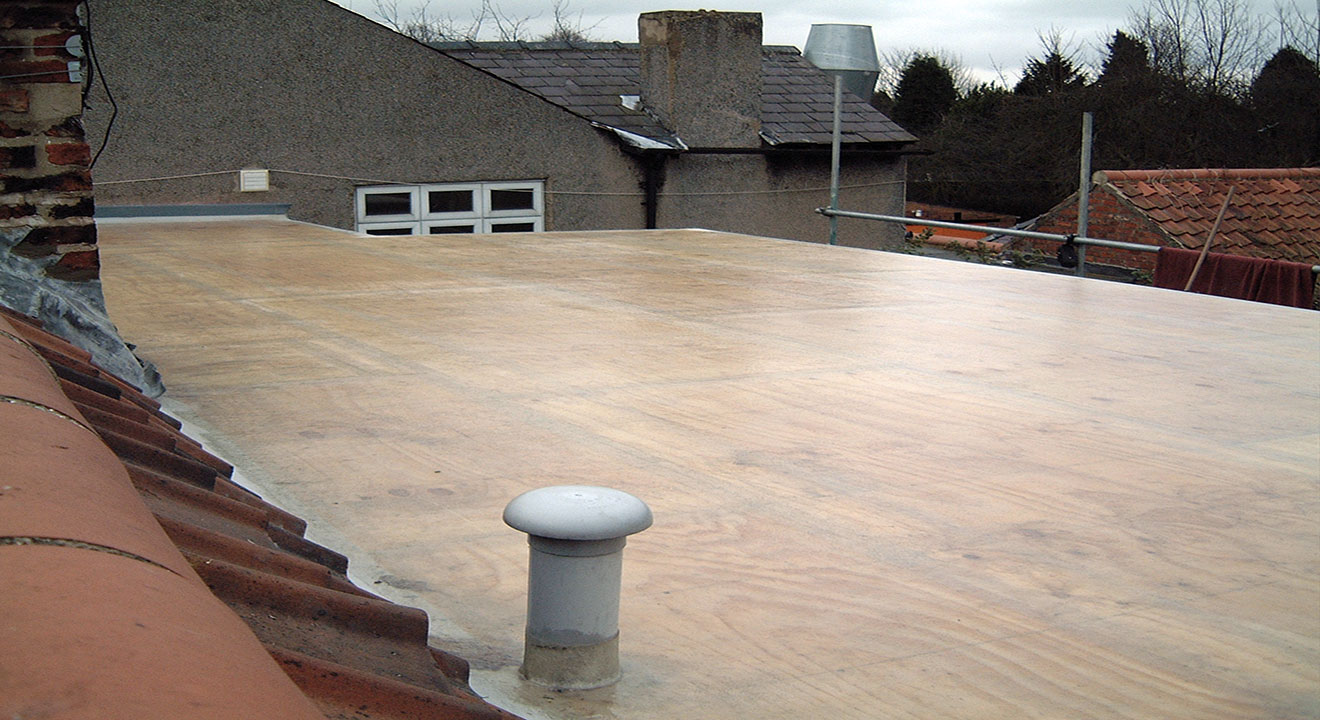 The size of a flat roof is nothing to worry about when using TuffStuff® GRP. This image highlights just how easily TuffStuff® can accommodate drains, ventilators, roof lights and flues.