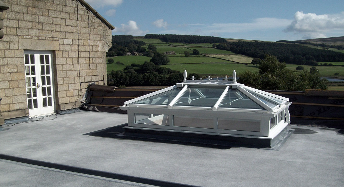 Roof lights are an excellent way to filter natural light into compact areas. This image shows how TuffStuff® GRP has been used to create a seamless finish across the entire roof including the area around the roof light.